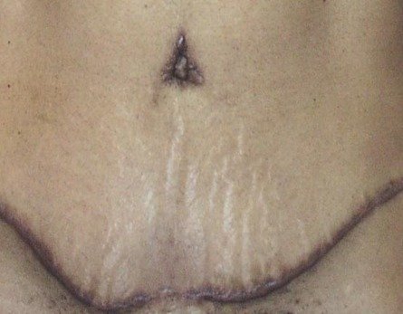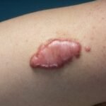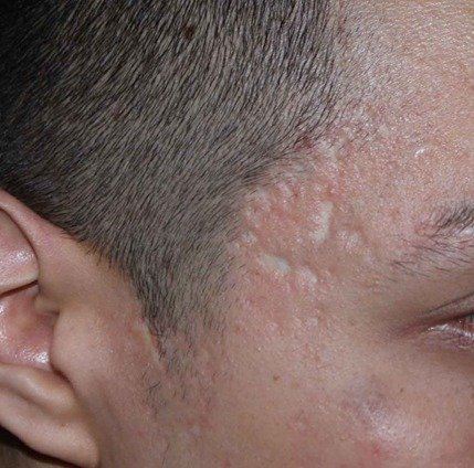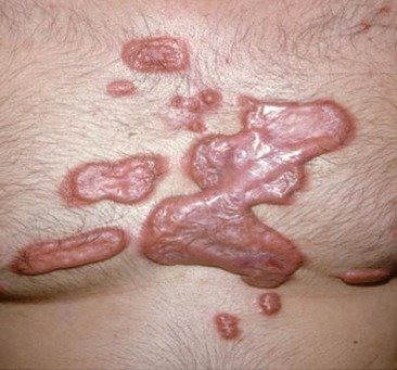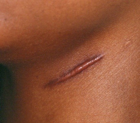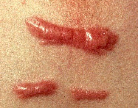 - b) Keloids – defined as an abnormal scar that grows beyond the boundaries of the original site of skin injury and generally considered more difficult to treat basically due to their thickness and tendency to re-grow.